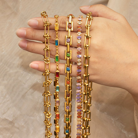 女性用ファッションチェーンネックレス18Kゴールドメッキステンレス钢ネックレスカラフルジルコン女性ネックレス