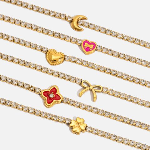 Mode Vrouwen Sieraden Pvd Plating 18K Goud Rvs Armband Hand Ketting Zirkonia Cross Vlinder Hart Bedelarmband