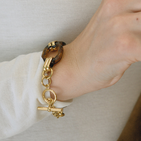 Retro tarzı 18K altın paslanmaz çelik Amber reçine OT toka bilezik kadınlar için bir ışık lüks ve High-end sınır ötesi aksesuar