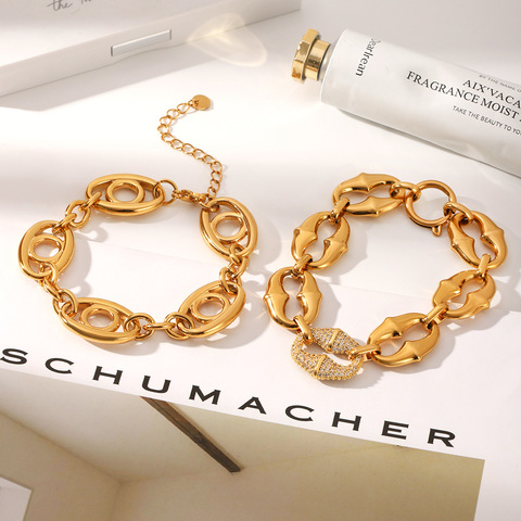 Mode Ketting Link Armbanden Pvd 18K Goud Rvs Armband Chunky O Link Ketting Armband Sieraden Set Voor Vrouwen