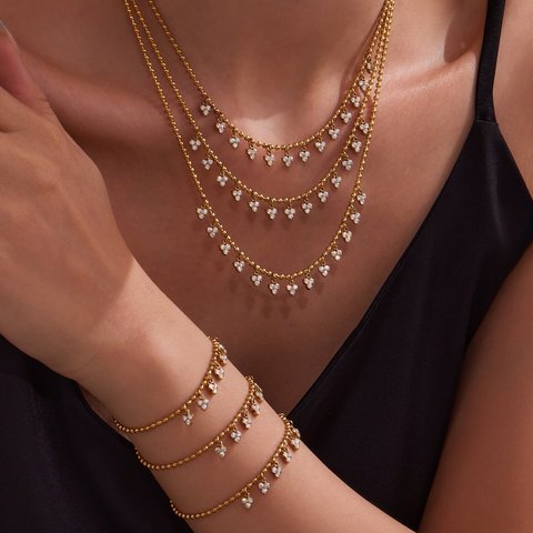 Collana delicata in acciaio inossidabile collana con perline alla moda e ciondoli con bracciale in zircone Set collane di gioielli pregiati ipoallergenici