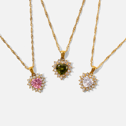 फैशन गहने रंगीन रत्न Cz पत्थर हार Hypoallergenic स्टेनलेस स्टील निविड़ अंधकार हीरा दिल हार महिलाओं के लिए