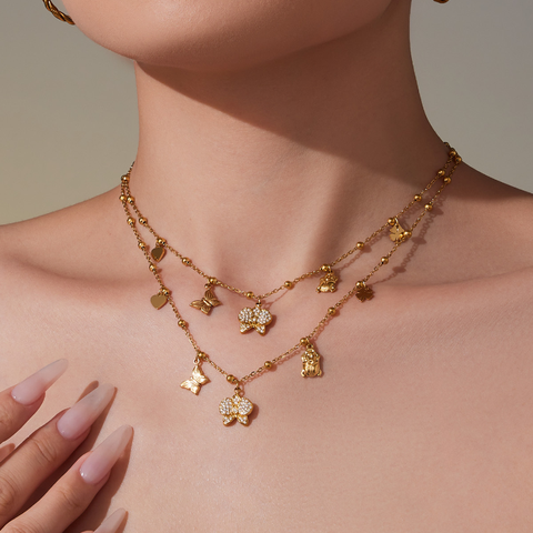 Moda takı kolye PVD kaplama 18k altın paslanmaz çelik kolye kadınlar için kelebek cons lar yay Charm kolye hediye