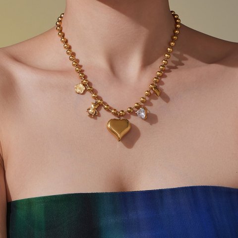 Narin paslanmaz çelik kolye moda boncuk zincir kolye Charms zirkon kalp kolye hipoalerjenik güzel takı kolye