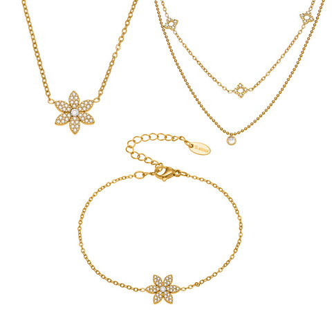 ステンレスネックレス18K PVD金メッキ繊細なファッションネックレスチャームフラワーブレスレットセット高級ジュエリーネックレス
