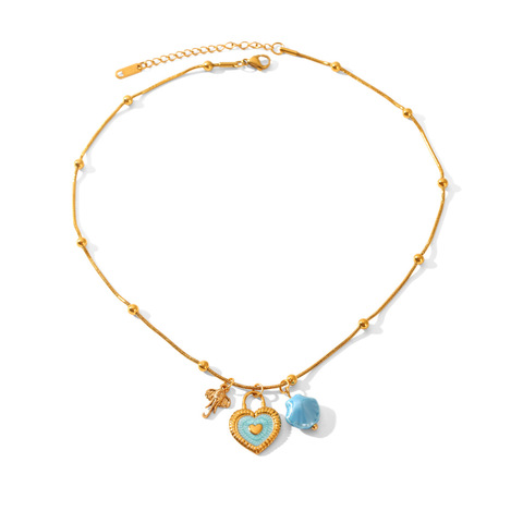 ステンレスネックレス繊細なファッションネックレスチャームセラミックシェルオイル滴りハートペンダントファインジュエリーネックレス