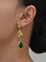 Boucles d'oreilles en acier inoxydable avec pendentif en pierre de verre tchèque en forme de goutte d'eau, aspect éblouissant de haute qualité, plaqué or 18 carats